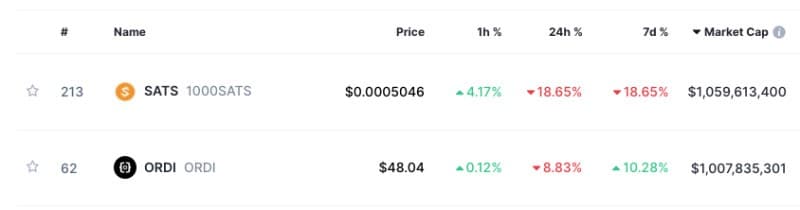 Through this approach, many popular assets have been issued on Bitcoin. The issuance method for these assets is fair minting, allowing anyone to mint a certain quantity of assets through a Bitcoin transaction. This issuance method provides participants with a fair opportunity and results in a decentralized distribution of assets, aligning more closely with the principles of decentralization. Most of these assets were issued starting in March, and as of today, some popular assets, such as $ORDI and $SATS, have market caps exceeding 1 billion USD, leading to significant wealth effects.